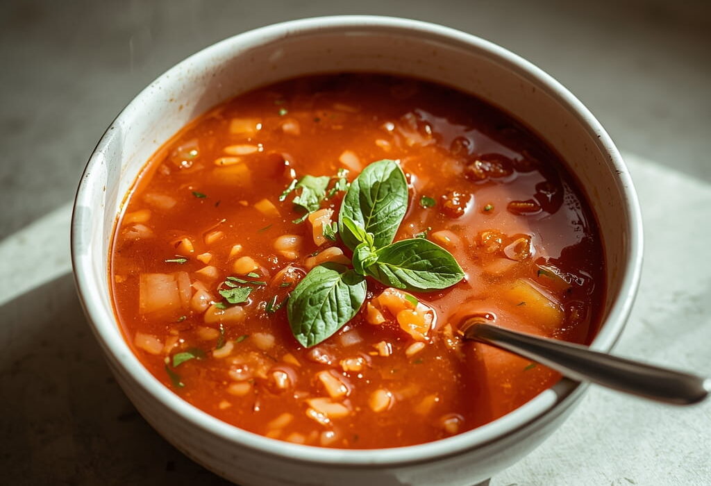 That’s it. Your simple and delicious tomato rice soup is ready.